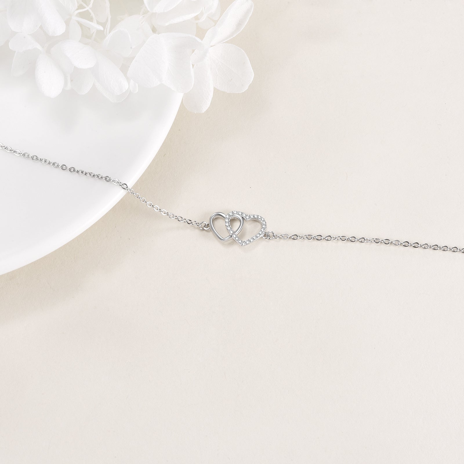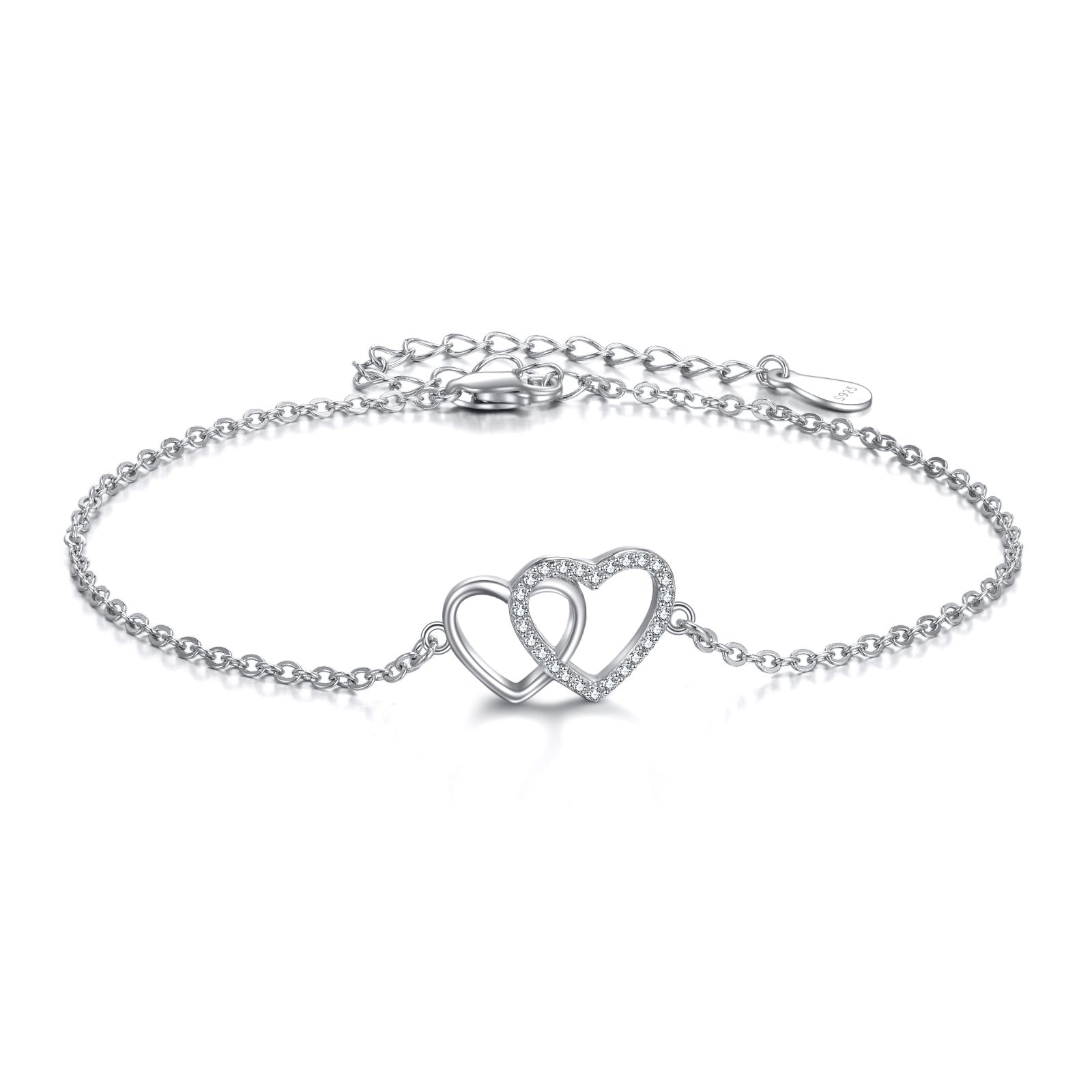 YFN Sterling Silver Double Love Heart Bracelet Jewelry Gifts for Women (US only)