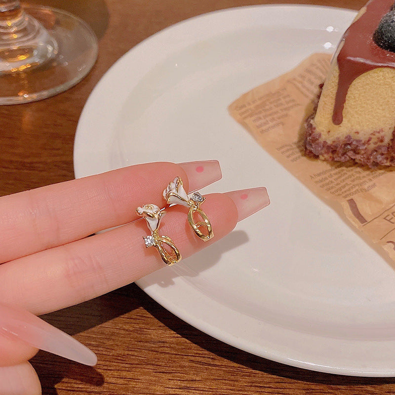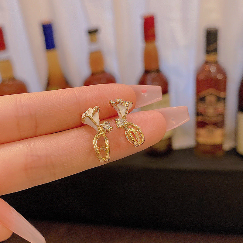 Sterling Silver Needle White Rose Flower Stud Earrings Light Luxury Minority Elegant Zircon