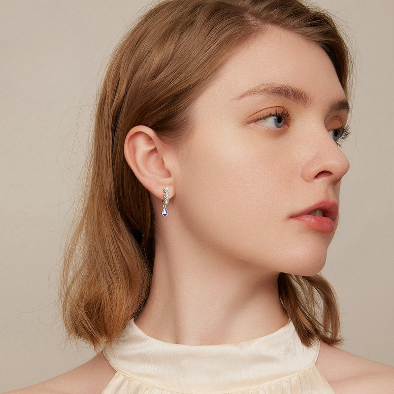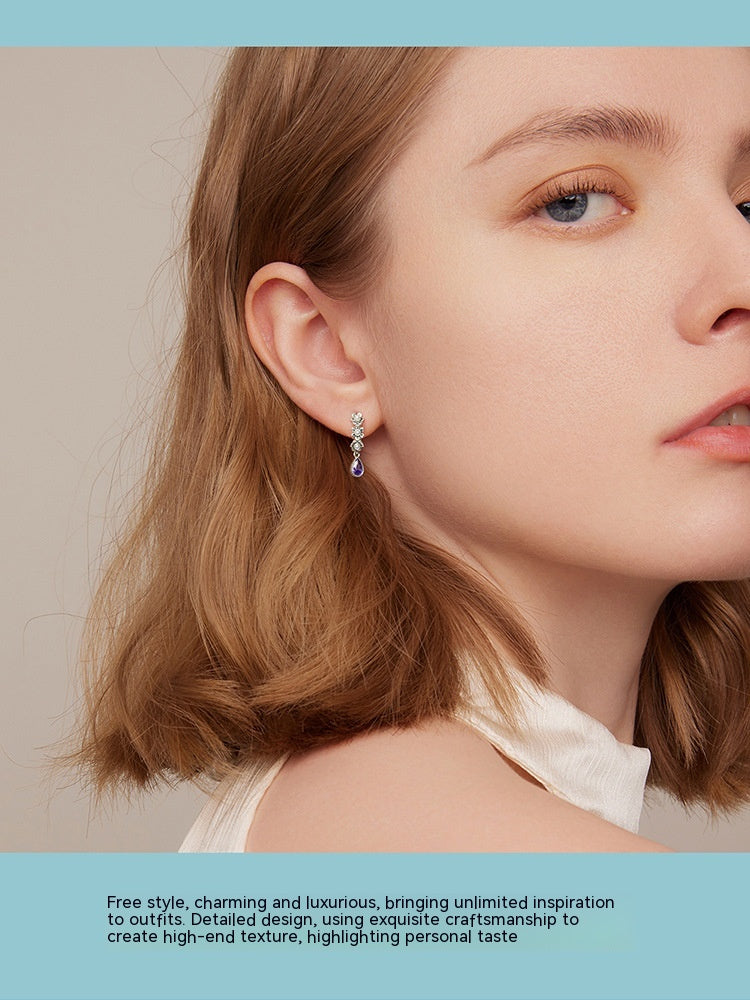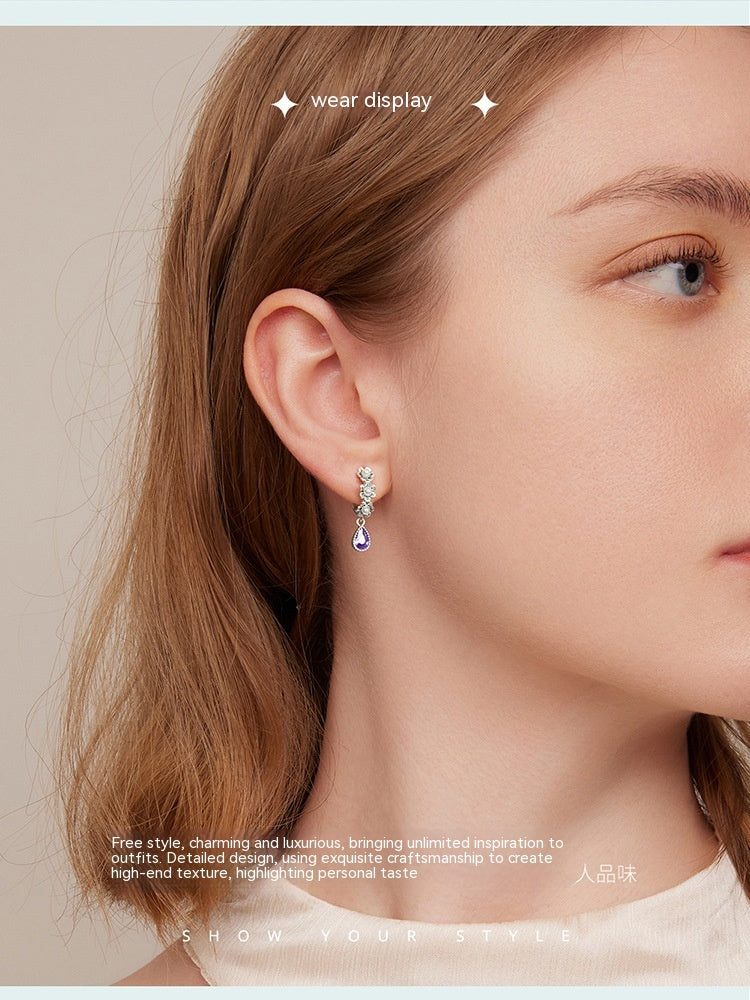 Sterling Silver S925 Vintage Purple Zircon Shell Pearls Simple Flower Earrings