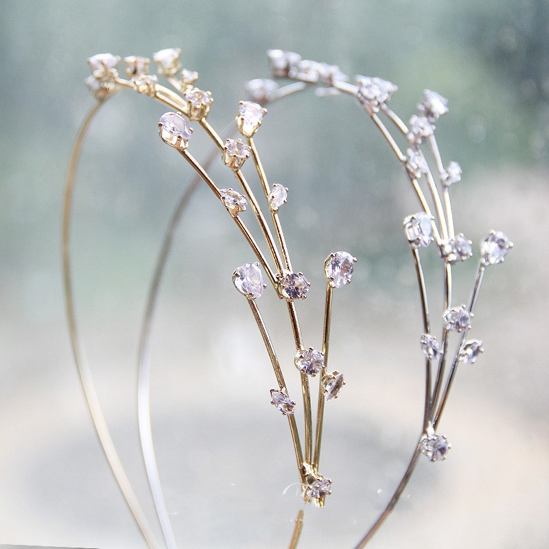 Color: Silver zircon raindrop branch hair band, gold zircon raindrop branch hair band